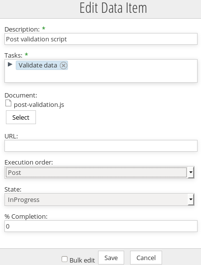 Task scripts are defined with Alfresco repository scripts plus some custom variables: